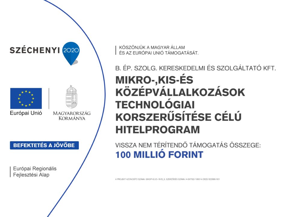 A projekt címe: Telephelyfejlesztés a B.ÉP.SZOLG Kft.-nél
